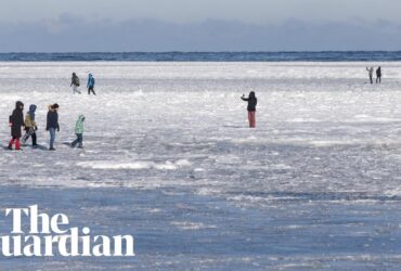 People walk on frozen Baltic Sea as extreme cold hits Poland