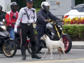 Stray Dog Named Jon Lends a Paw to Traffic Cops in KL