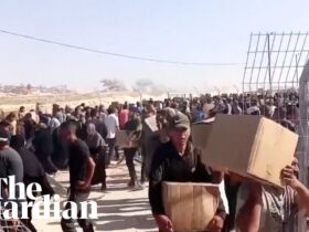 Thousands rush to receive aid at southern Gaza distribution centre