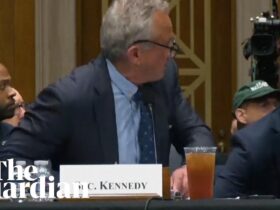 RFK jumps out of seat in shock as protesters disrupt committee hearing