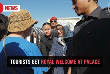 Queen greets tourists at entrance to Istana Negara
