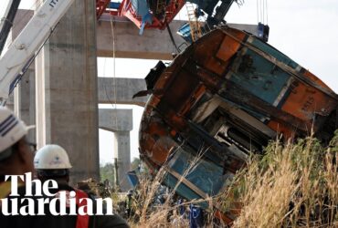 Smoke billows from passenger train after crane collapse killed at least 22 people