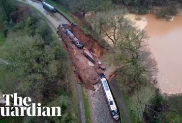 Giant hole swallows boats on canal in Shropshire