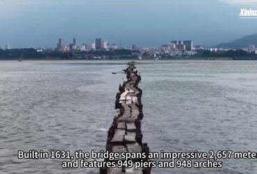 Ancient Chinese bridge emerges from the depths of Poyang Lake