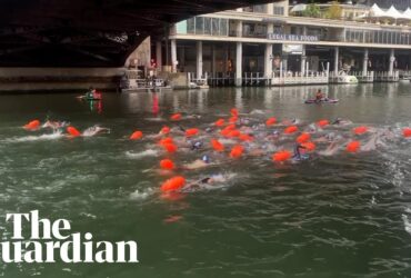 Moment hundreds of people plunge in Chicago River for first official swim in 100 years