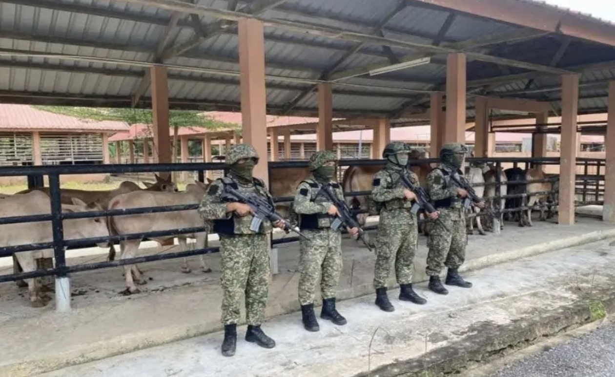 The Malaysian Second Infantry Division Headquarters (2nd Division) said troops conducting border control detected seven men bringing the cattle across the riverbank from Thailand at about 5.15 am.
