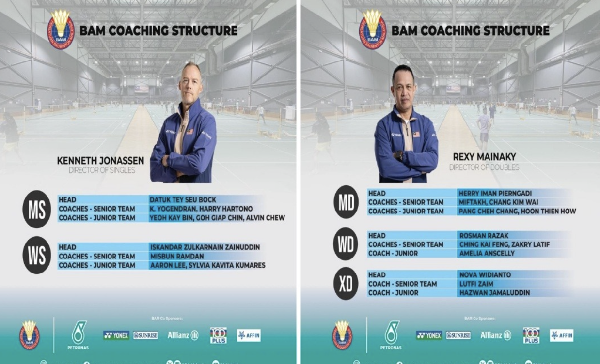 BAM Performance Committee chairman Datuk Seri Dr Lee Chong Wei said the strategic move will see Harry Hartono appointed as men’s singles coach, Yeoh Kay Bin named as junior men’s singles coach, while Mohd Zakry Abdul Latif taking on the role of women’s doubles coach.