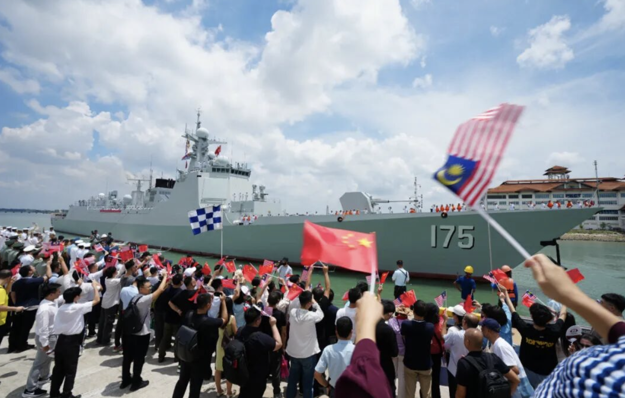 The Malaysian side held a grand welcoming ceremony at the port, featuring a military band and personnel from the Malaysian armed forces.