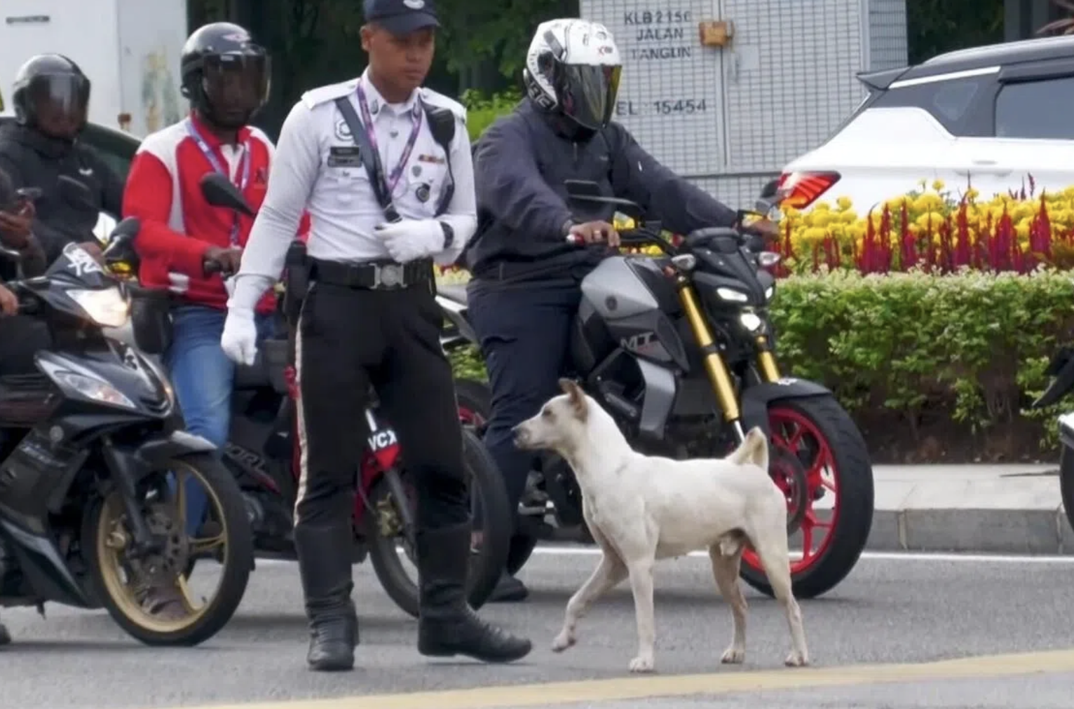 Stray Dog Named Jon Lends a Paw to Traffic Cops in KL
