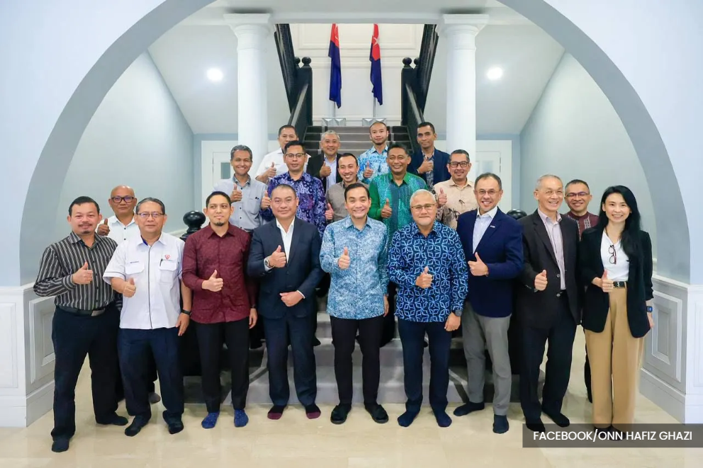 Johor Menteri Besar Datuk Onn Hafiz Ghazi and representatives from Tenaga Nasional Berhad and Ranhill SAJ give the thumbs up after their meeting to discuss utilities security, in a photo shared on his social media on January 16, 2026.