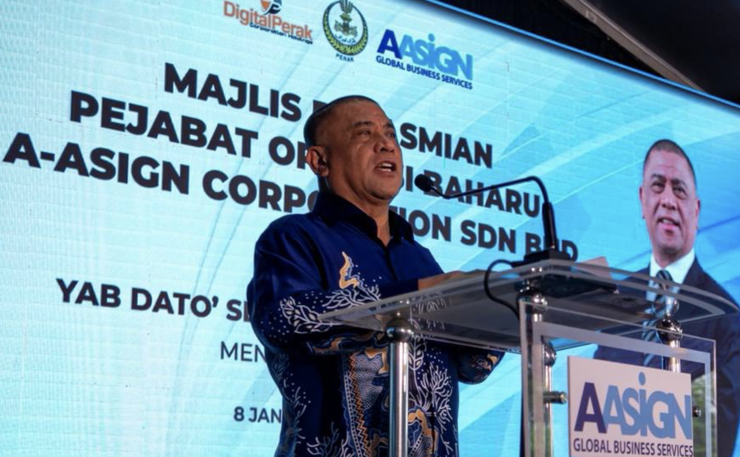 IPOH, 8 Jan — Pembukaan pejabat operasi baharu A-ASign Corporation Sdn Bhd di Ipoh mencerminkan keyakinan pelabur terhadap Perak sebagai lokasi strategik untuk pertumbuhan industri perkhidmatan bernilai tinggi dan ekonomi digital.