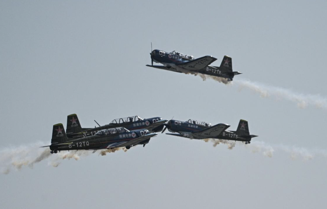 Bagi segmen pertunjukan udara, aksi pasukan aerobatik Afrika Selatan ‘AERO’ dan pasukan China ‘Red Star’ berturut-turut menggegarkan ruang udara Zhuhai.