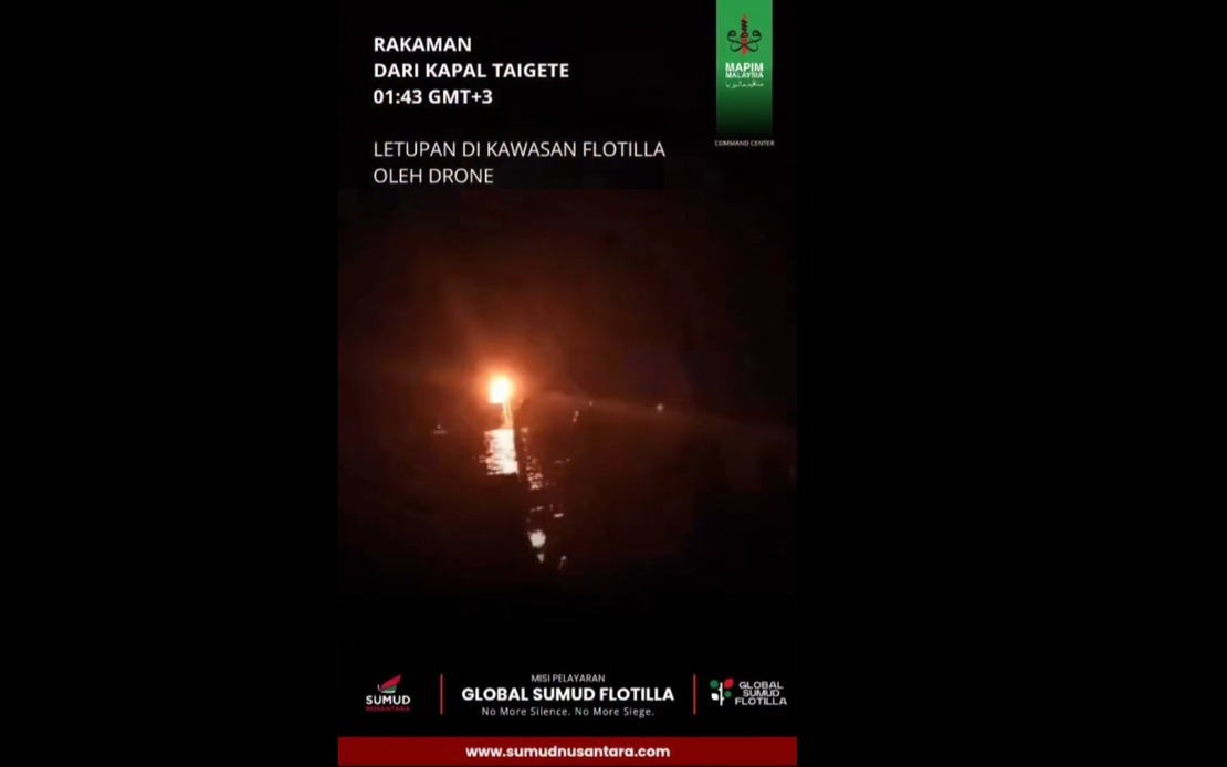 ISTANBUL, 24 Sept — Flotilla Sumud Global melaporkan pada Selasa kapal-kapalnya berdepan gangguan berulang di laut termasuk letupan, dron tidak dikenali serta gangguan komunikasi ketika konvoi kemanusiaan itu menuju ke Semenanjung Gaza, lapor Anadolu Ajansi (AA).