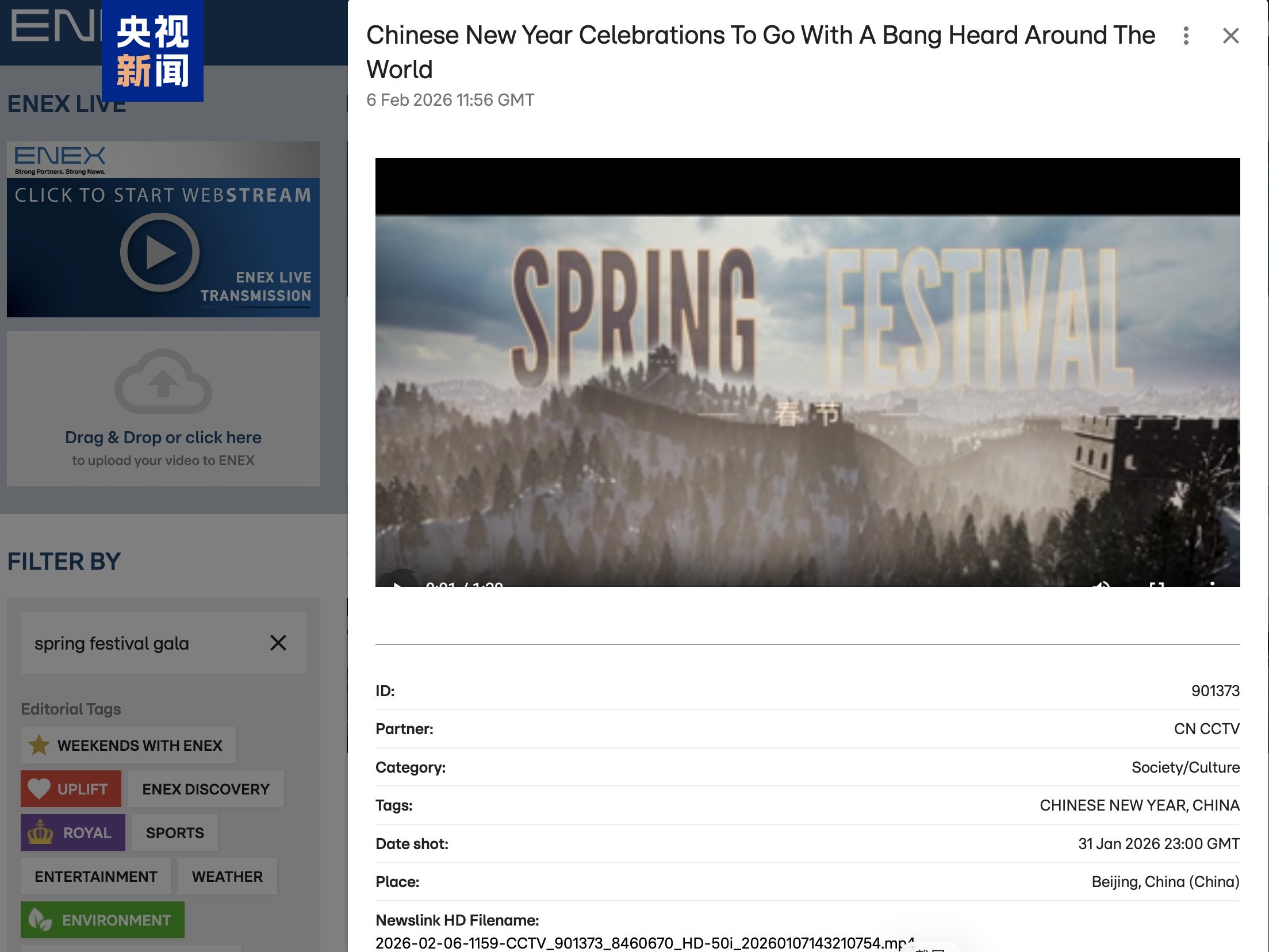 Pada saat menjelang Tahun Baharu Cina (TBC) 2026, Global Video News Agency di bawah Kumpulan Meida China (CMG) bekerjasama dengan tujuh gabungan persatuan akhbar arus perdana di dunia, iaitu Asia-Pacific Broadcasting Union(ABU), African Union of Broadcasting (AUB), Latin America News Agency (LANA),,The Arab States Broadcasting Union (ASBU), European News Exchange Network (ENEX), Islamic Broadcasting Union dan Caribbean Broadcasting Union untuk mempromosi Malam Gala TBC 2026 yang akan disiarkan di peringkat global.