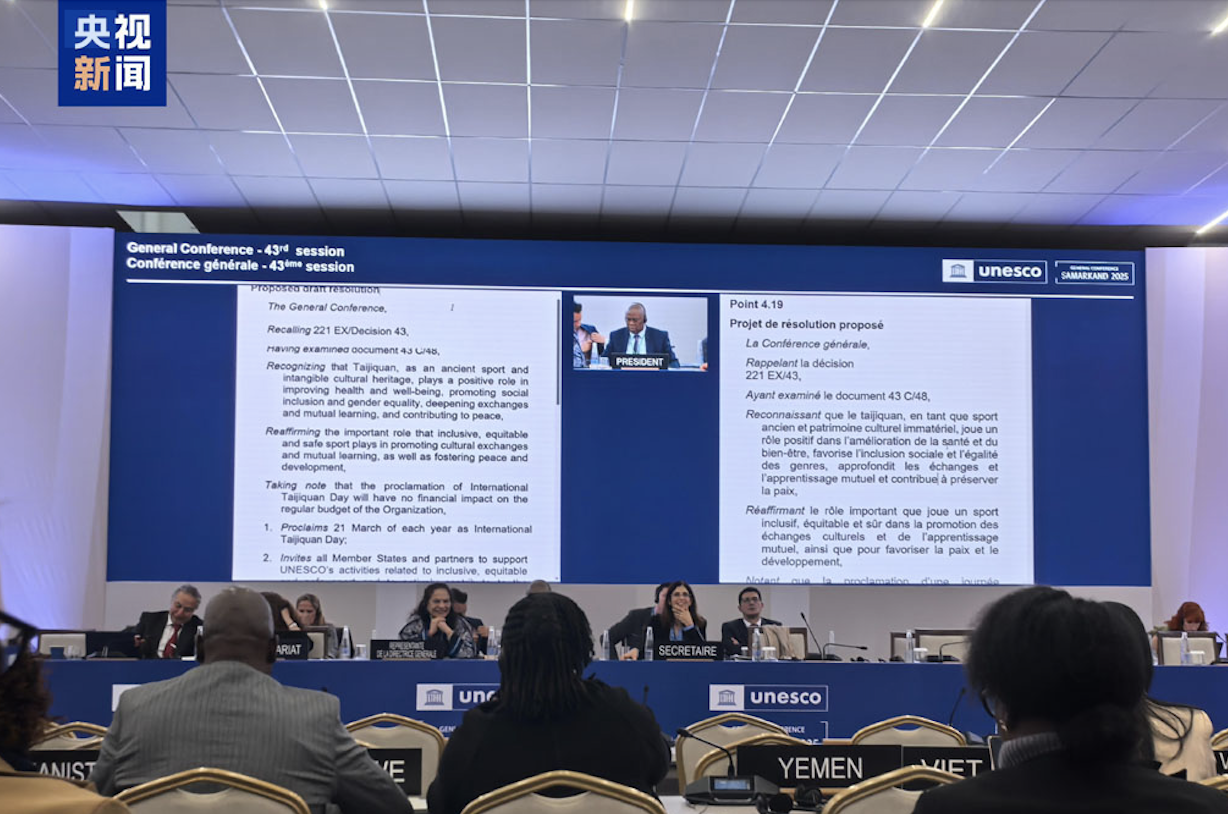 Pertubuhan Pendidikan, Saintifik dan Kebudayaan Pertubuhan Bangsa-Bangsa Bersatu (UNESCO) meluluskan resolusi mengisytiharkan 21 Mac setiap tahun sebagai “Hari Taijiquan Antarabangsa”.