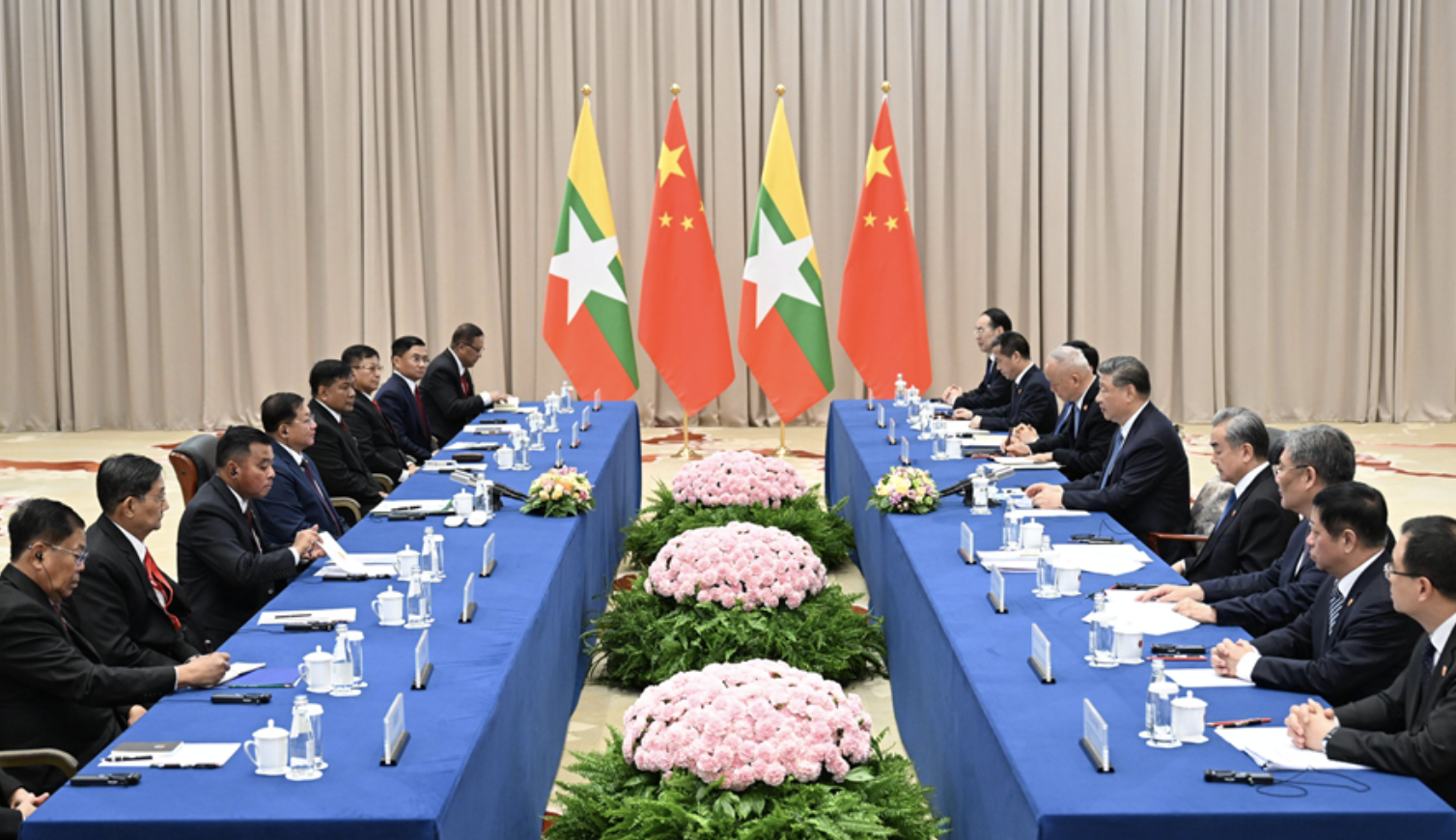 Xi berkata China menyokong Myanmar menempuh jalan pembangunan yang selaras dengan keadaan negaranya serta menggerakkan agenda politik domestik dengan stabil dan baik.