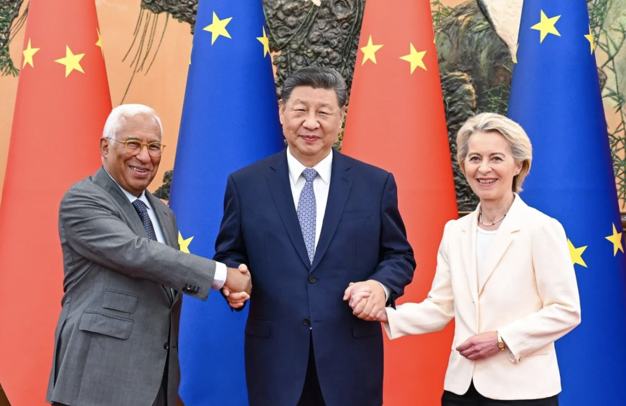 Dalam pertemuan tersebut, Xi menyatakan bahawa tahun ini merupakan ulang tahun ke-50 hubungan diplomatik antara China dan Eropah, serta ulang tahun ke-80 Pertubuhan Bangsa-Bangsa Bersatu (PBB).