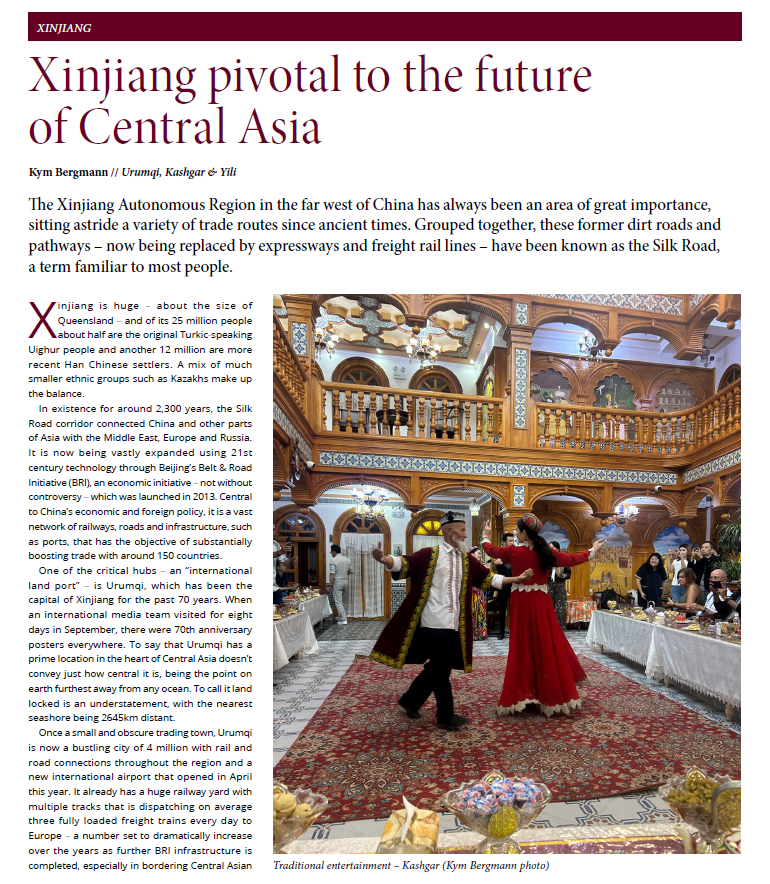 Kym Bergmann, editor dari majalah Asia Pacific Defence Reporter (APDR), Australia telah membuat kunjungan ke wilayah Xinjiang, China pada Sept lalu.