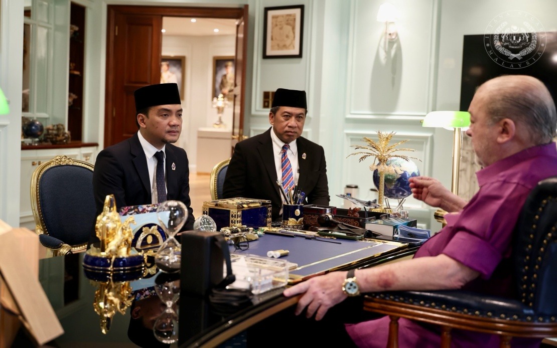 JOHOR BAHRU, 8 April — Yang di-Pertuan Agong Sultan Ibrahim berkenan dipersembah taklimat perkembangan semasa mengenai pentadbiran serta kemajuan projek pembangunan negeri daripada Menteri Besar Johor Datuk Onn Hafiz Ghazi.