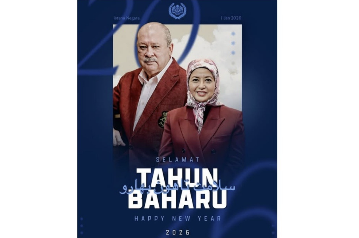 KUALA LUMPUR, 1 Jan — Yang di-Pertuan Agong Sultan Ibrahim dan Raja Permaisuri Agong Raja Zarith Sofiah berkenan menzahirkan ucapan Selamat Tahun Baharu 2026 kepada seluruh rakyat Malaysia.