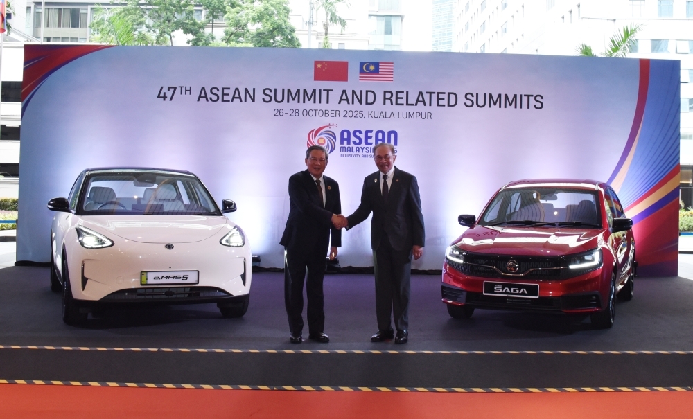 KUALA LUMPUR, 28 Okt — Perdana Menteri Datuk Seri Anwar Ibrahim dan Perdana Menteri China Li Qiang hari ini meluangkan masa daripada jadual padat Sidang Kemuncak ASEAN ke-47 dan Sidang Kemuncak Berkaitan untuk menyaksikan model terbaharu Proton Saga dan Proton e.MAS 5.