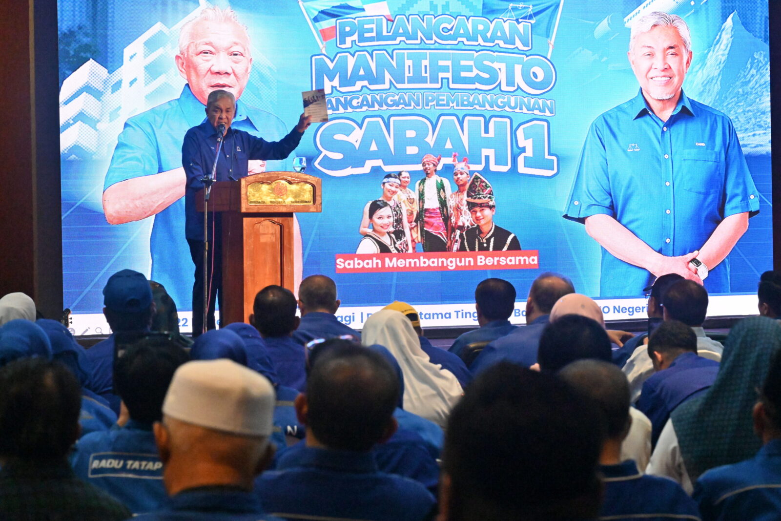 Ahmad Zahid berkata manifesto yang dinamakan ‘Rancangan Pembangunan Sabah Satu (RPS1)’ yang dibentangkan hari ini tidak dirangka secara tergesa-gesa, sebaliknya telah siap seminggu sebelum hari penamaan calon pada 15 Nov, namun dilancarkan hari ini agar rakyat mempunyai ruang mencukupi untuk membandingkannya dengan tawaran parti lain.