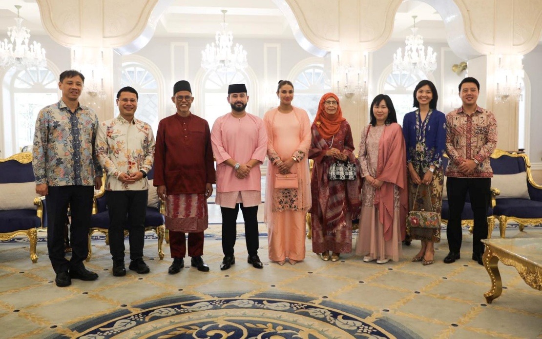 Menteri Pembangunan Sosial dan Keluarga Masagos Zulkifli dan Menteri Pendidikan Desmond Lee ditemani pasangan masing-masing mengucapkan Selamat Hari Raya kepada Tunku Mahkota Ismail serta Che’ Puan Mahkota Khaleeda Johor.
