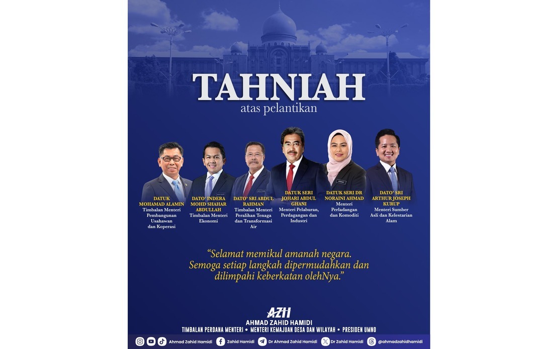 Beliau turut mengucapkan tahniah kepada Datuk Mohd Shahar Abdullah yang menerima amanah baharu sebagai Timbalan Menteri Ekonomi, Datuk Mohamad Alamin (Timbalan Menteri Pembangunan Usahawan dan Koperasi) serta Datuk Seri Abdul Rahman Mohamad (Timbalan Menteri Peralihan Tenaga dan Transformasi Air).