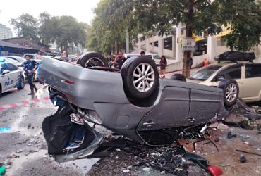 Pekerja Kedai Cuci Kereta Parah, Kereta Dipandu Terjunam Dari Tingkat Tiga