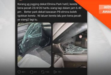 Beberapa cermin kereta pengunjung Elmina Park dipecahkan