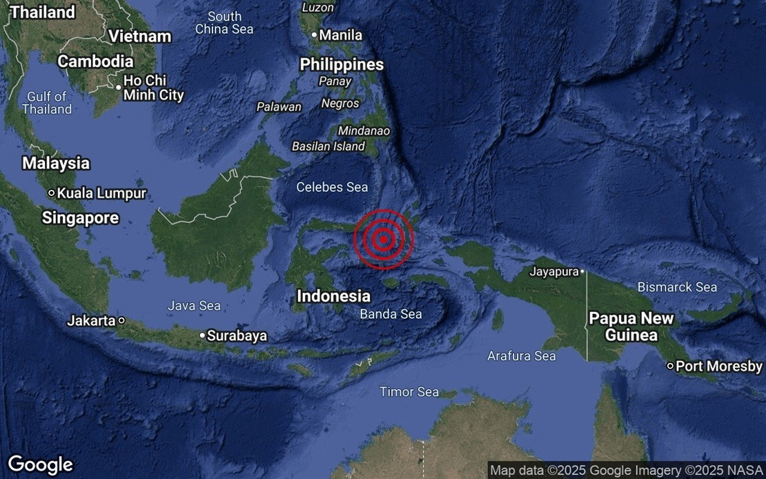 Jabatan Meteorologi Malaysia (MetMalaysia) dalam kenyataan memaklumkan gempa itu berlaku pada 6.12 pagi dengan koordinat 0.2 darjah selatan dan 126.1 darjah timur, pada kedalaman 114 kilometer.