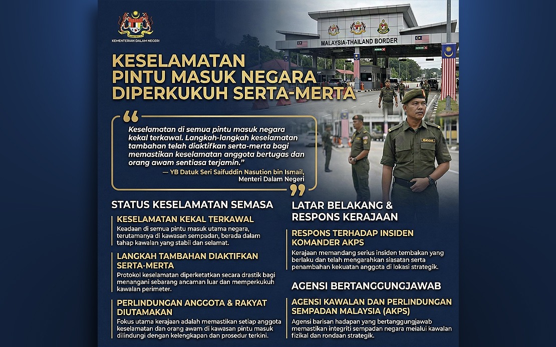 “Sebelum ini lebih 20 agensi beroperasi secara berasingan di sempadan negara. Kini kita mempunyai satu pasukan yang lebih kukuh dan berfokus bagi melaksanakan fungsi kawalan sempadan dengan lebih berkesan,” katanya.