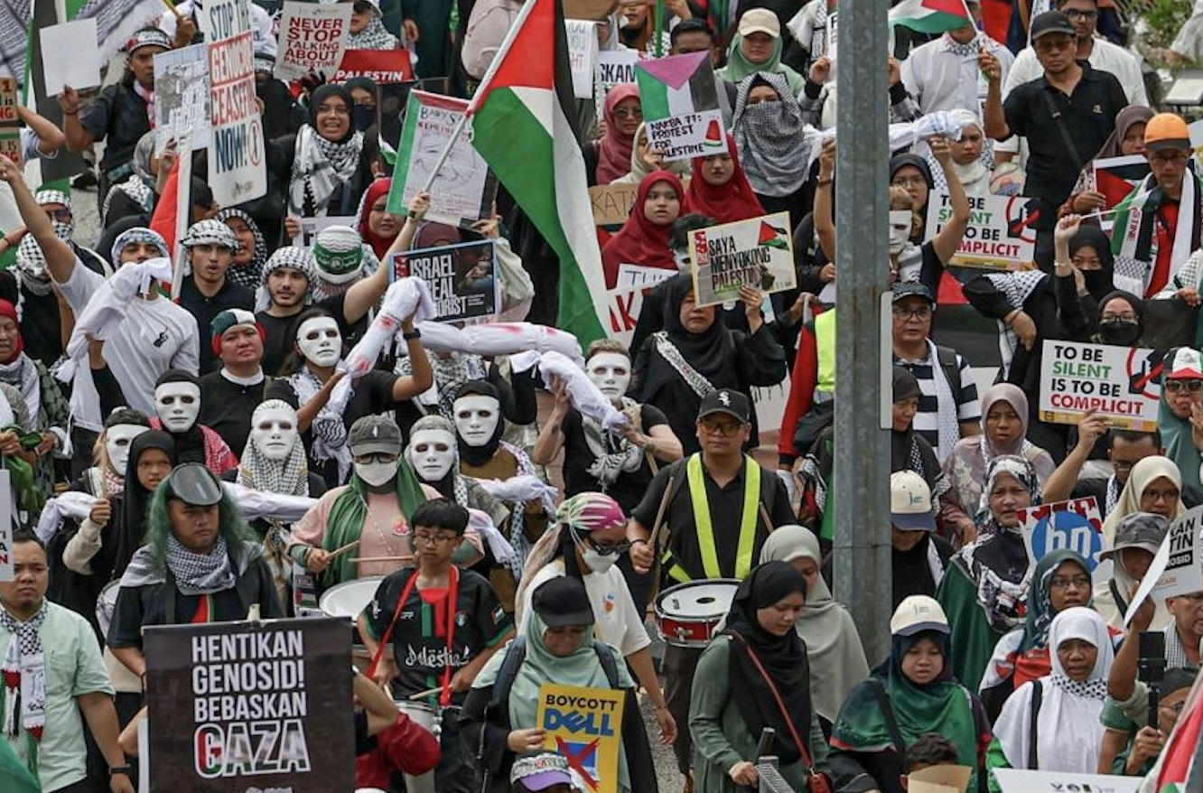 Para peserta memulakan perarakan dari Menara Tabung Haji di Jalan Tun Razak di sini, sebelum berhimpun di Pejabat Pesuruhjaya Tinggi British dan kemudiannya meneruskan perarakan ke Kedutaan Amerika Syarikat.