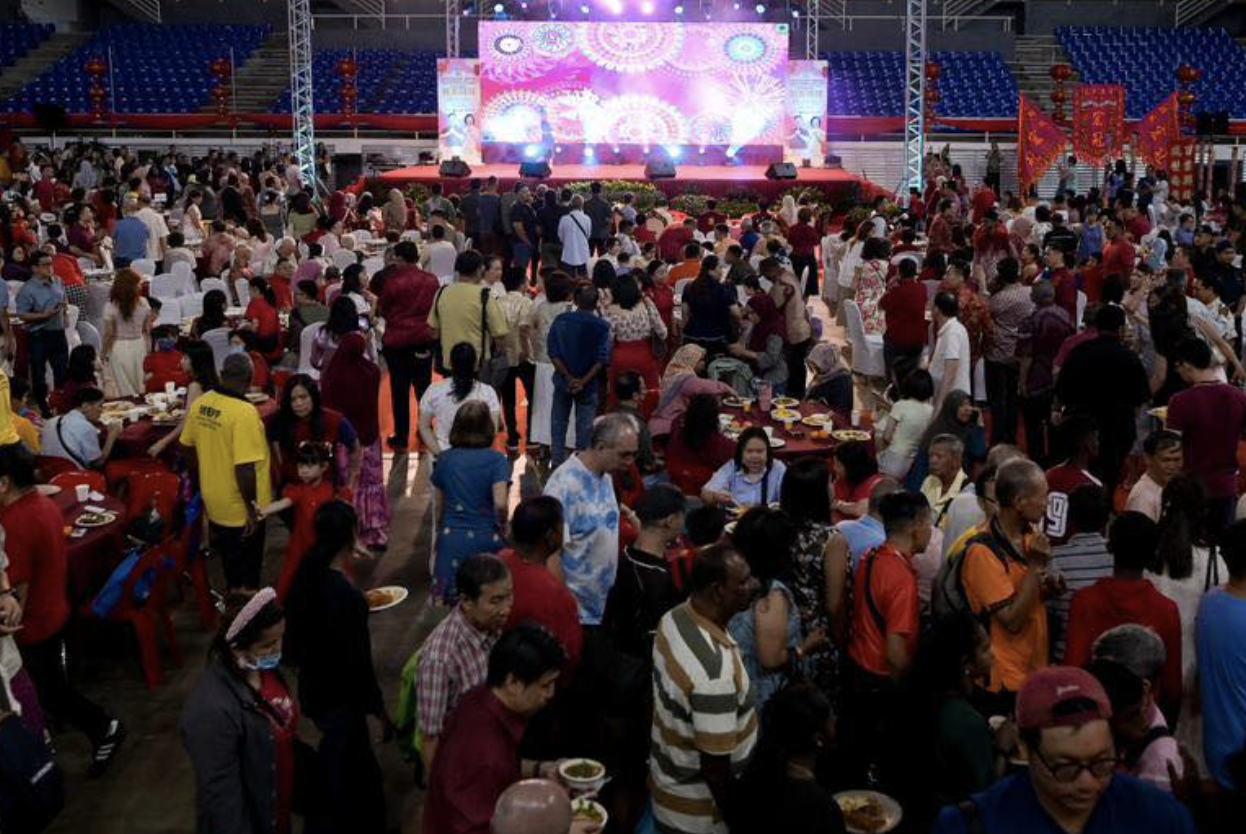 GEORGE TOWN, 17 Feb — Semangat muhibah dalam kalangan rakyat jelas terpancar apabila lebih 10,000 orang daripada pelbagai kaum dan latar belakang membanjiri Majlis Rumah Terbuka Tahun Baru Cina anjuran Ketua Menteri Pulau Pinang Chow Kon Yeow di Setia SPICE Arena hari ini.