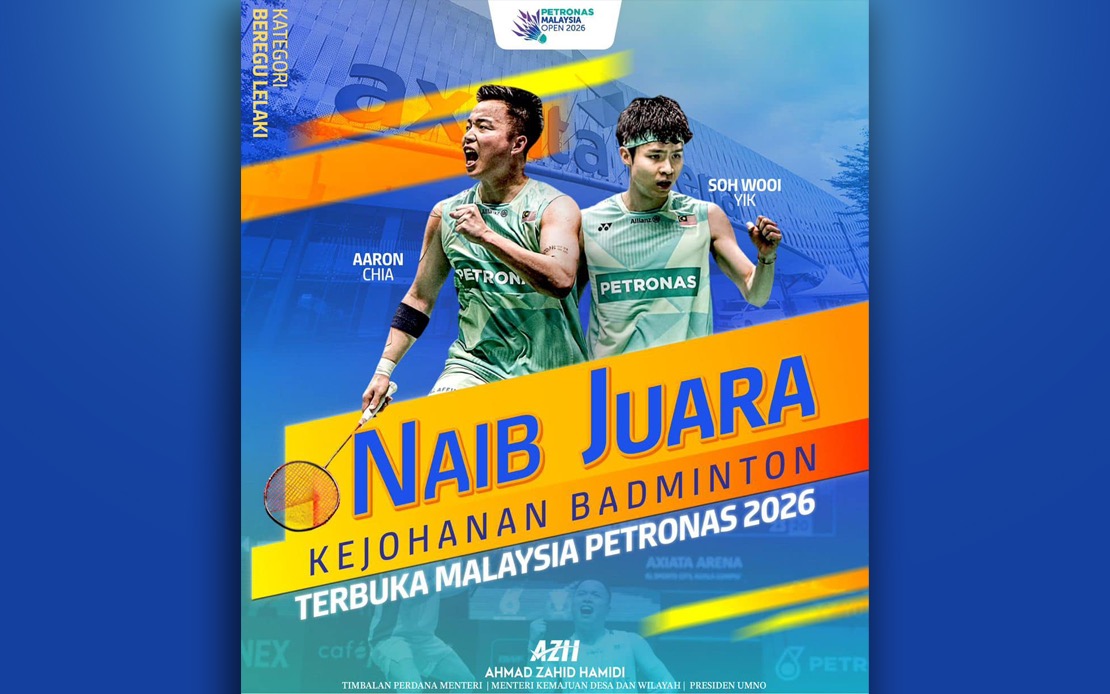 KUALA LUMPUR, 11 Jan — Timbalan Perdana Menteri Datuk Seri Dr Ahmad Zahid Hamidi menyifatkan pencapaian beregu lelaki kebanggaan negara, Aaron Chia dan Soh Wooi Yik muncul naib juara Terbuka Malaysia 2026, sebagai bukti kecekalan dan disiplin tinggi kedua-dua pemain itu.