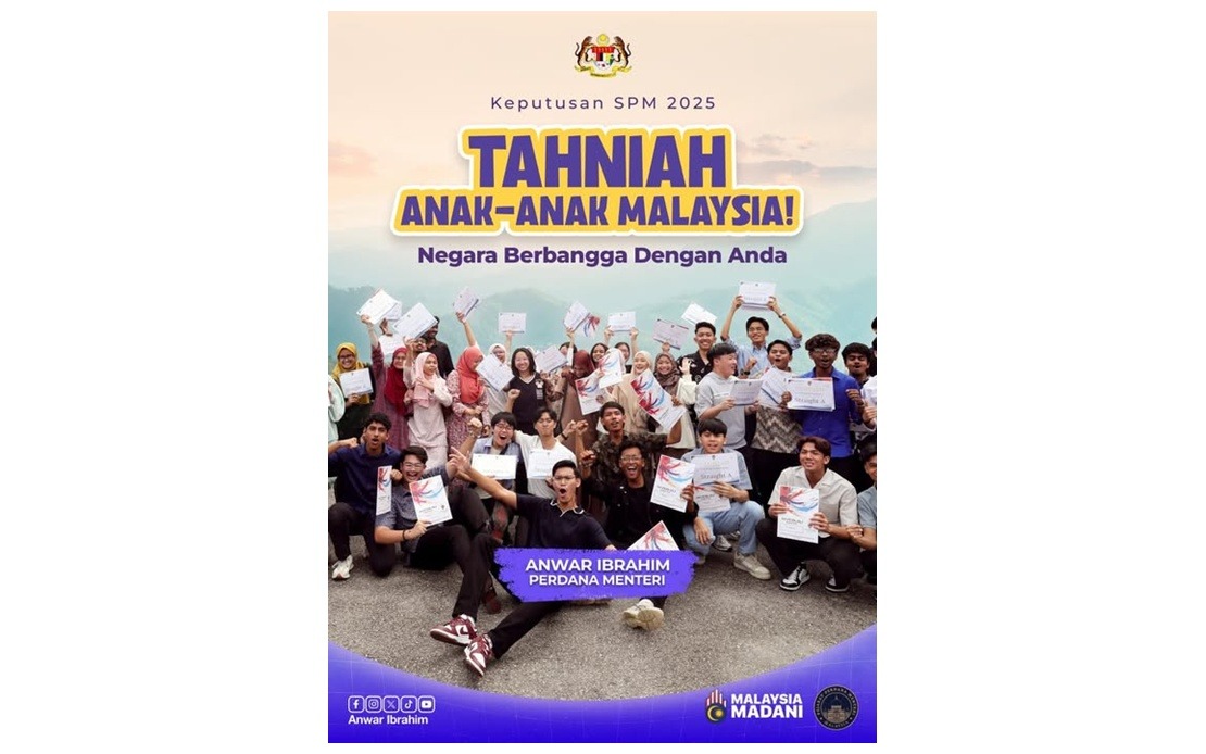 KUALA LUMPUR, 31 Mac — Perdana Menteri Datuk Seri Anwar Ibrahim mengucapkan tahniah kepada semua pelajar yang memperoleh keputusan cemerlang dalam peperiksaan Sijil Pelajaran Malaysia (SPM) 2025 yang dimumkan hari ini.
