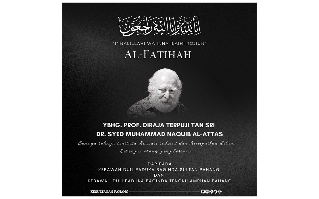 KUANTAN, 9 Mac — Sultan Pahang Al-Sultan Abdullah Ri’ayatuddin Al-Mustafa Billah Shah dan Tengku Ampuan Pahang Tunku Azizah Aminah Maimunah Iskandariah, menzahirkan ucapan takziah kepada keluarga Prof Diraja Tan Sri Dr Syed Muhammad Naquib Al-Attas yang meninggal dunia petang semalam.