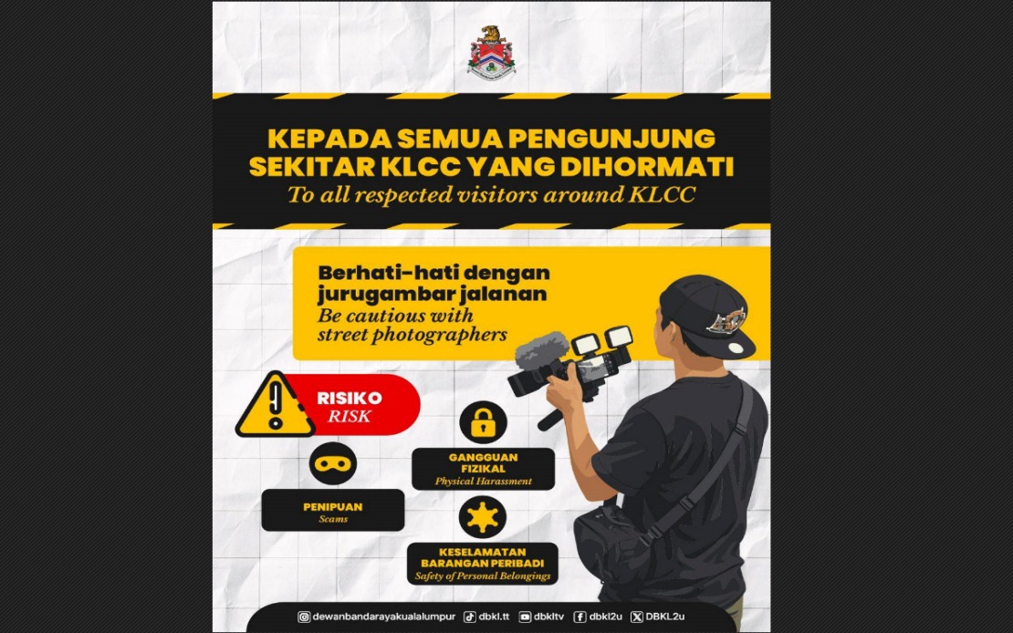 “Justeru, setiap lokasi, terutamanya kawasan tumpuan pelancong seperti sekitar KLCC dan pusat bandar perlu kekal sebagai ruang yang selamat, selesa dan menyenangkan untuk semua,” menurut DBKL menerusi hantaran Facebook hari ini.