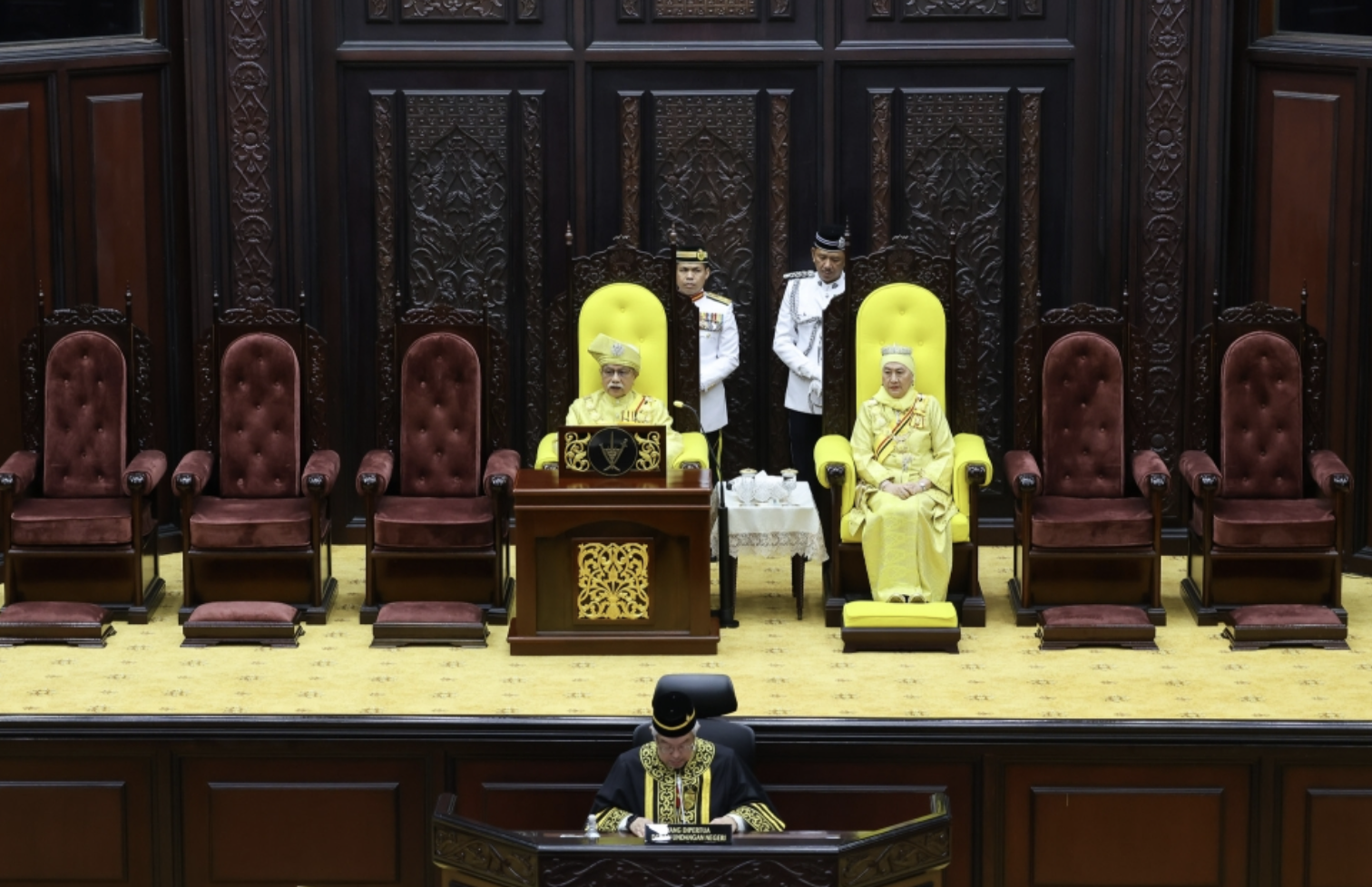 Upon his arrival, Tuanku Muhriz inspected a guard of honour before entering the assembly to deliver his royal address.