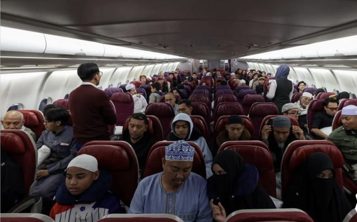 The 164 Malaysians settle down in their seats in a specially chartered Malaysia Airlines flight before taking off from Jeddah, Saudi Arabia on March 10, 2026. — Picture via FACEBOOK/BERNAMA