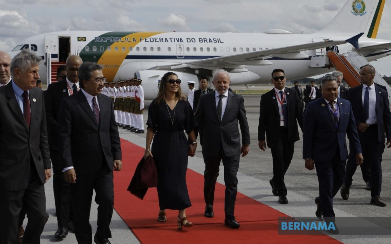 The special aircraft carrying Lula, his First Lady Janja Lula da Silva, and his delegation landed at the Bunga Raya Complex, Kuala Lumpur International Airport (KLIA), at about 3.30pm and were received by Plantation and Commodities Minister Datuk Seri Johari Abdul Ghani.