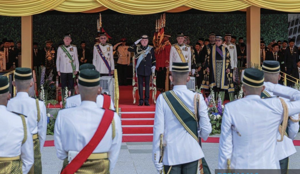 Sultan Ibrahim arrived at Parliament Square at about 10 am and was welcomed by Prime Minister Datuk Seri Anwar Ibrahim.
