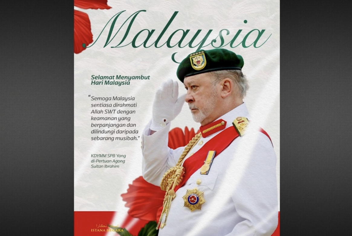 KUALA LUMPUR, Sept 16 – His Majesty Sultan Ibrahim, King of Malaysia, and Her Majesty the Queen, Raja Zarith Sofiah, have extended Malaysia Day greetings and prayed that Malaysia would always be blessed with lasting peace and be protected from any calamity.