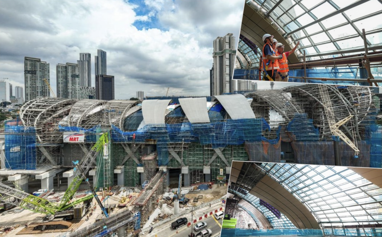 In a statement today, MRT Corp chief executive officer Datuk Mohd Zarif Hashim said the inner bands form the station roof, providing permanent protection over the platforms while giving the station its defining structure.