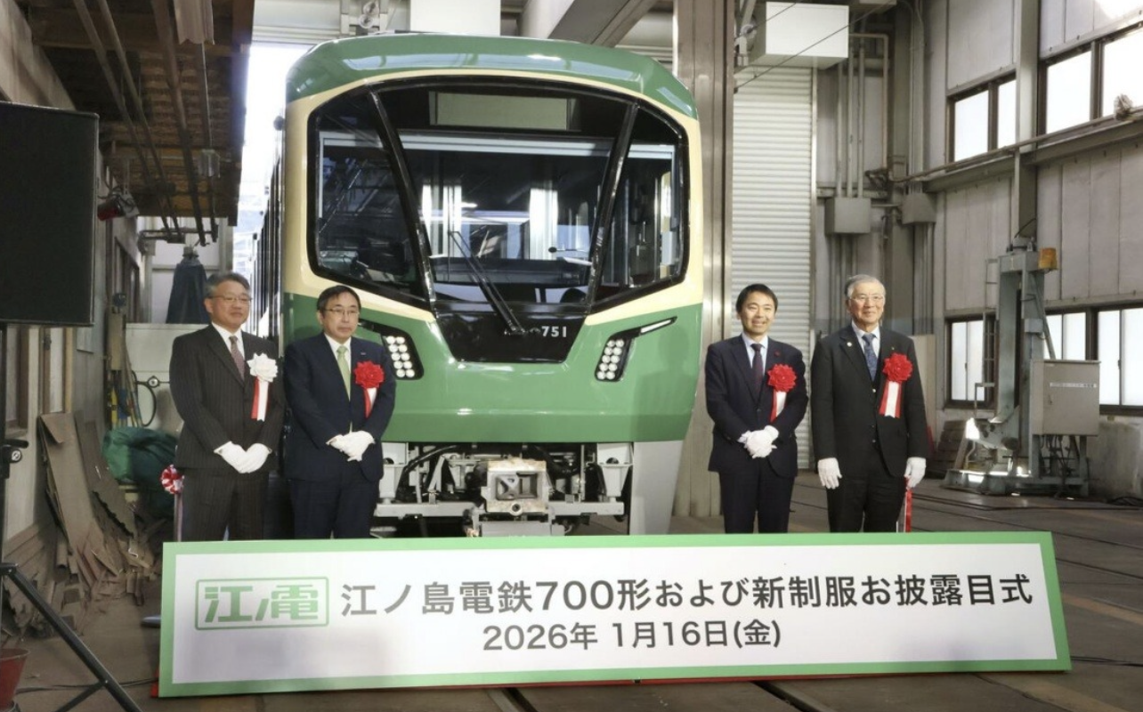 YOKOHAMA, Jan 17 — Enoshima Electric Railway Co., known for scenic coastal views along its route and for a railroad crossing featured in the popular manga and anime series “Slam Dunk,” unveiled a new train on Friday that will start operating in spring.