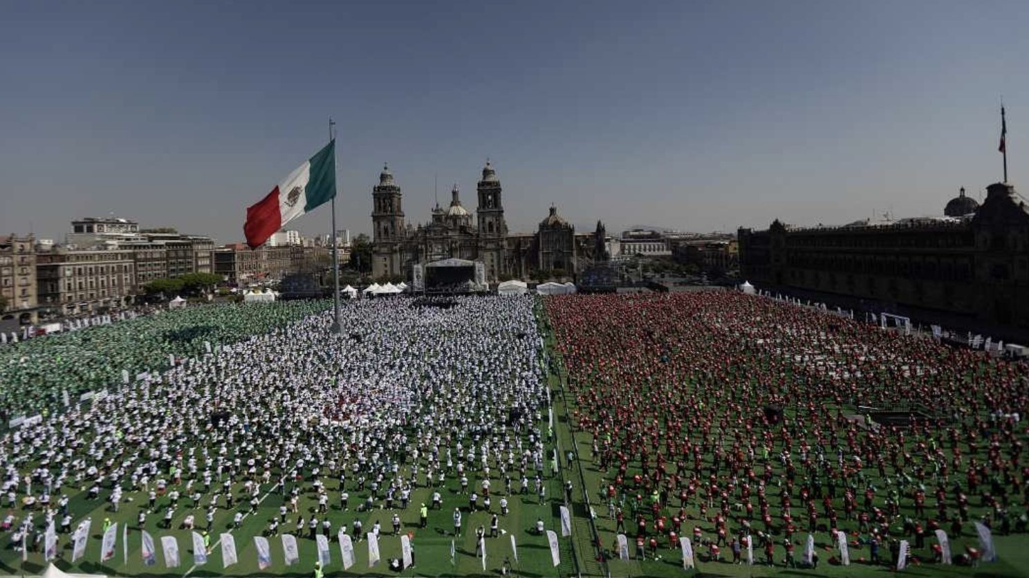 Guinness World Records judge Alfredo Arista confirmed the record set in Mexico City after 9,500 people participated in a 35-minute football lesson in the capital’s main square, the Zocalo, smashing the previous record of 1,038 participants.