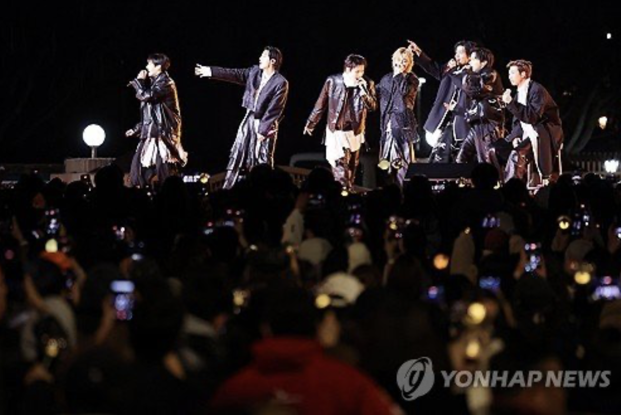 BTS staged a free concert at Seoul’s Gwanghwamun Square on March 21 to mark its return after nearly four years of hiatus due to members’ mandatory military service. The show drew more than 100,000 fans, according to organizers.
