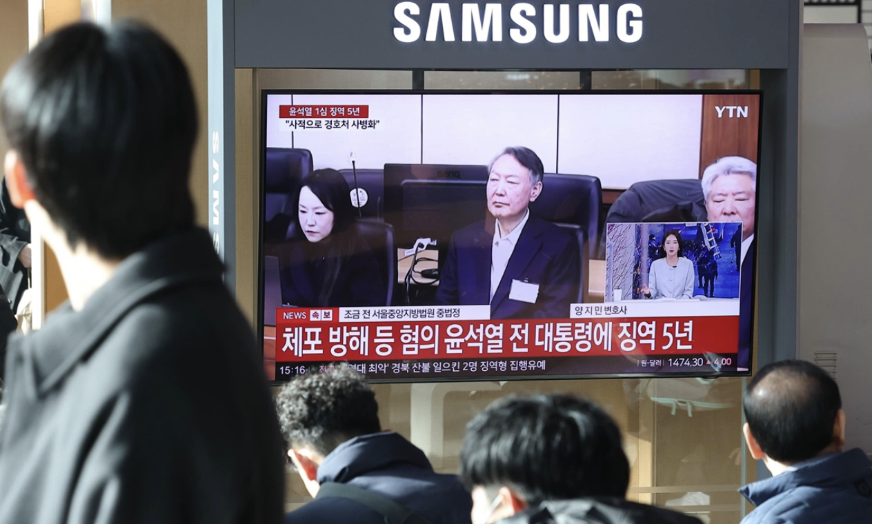 The Seoul Central District Court handed down the sentence in the first ruling on charges stemming from Yoon’s short-lived imposition of martial law in December 2024, according to Yonhap News Agency.