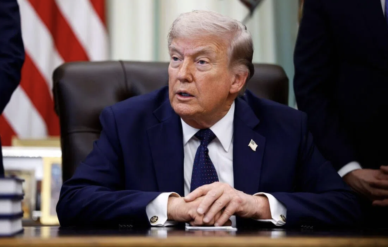 Speaking to reporters from the Oval Office on Thursday, Trump said: “We’ve been looking at it and we can meet that very easily by just putting a big tariff on the UK, so they better be careful.