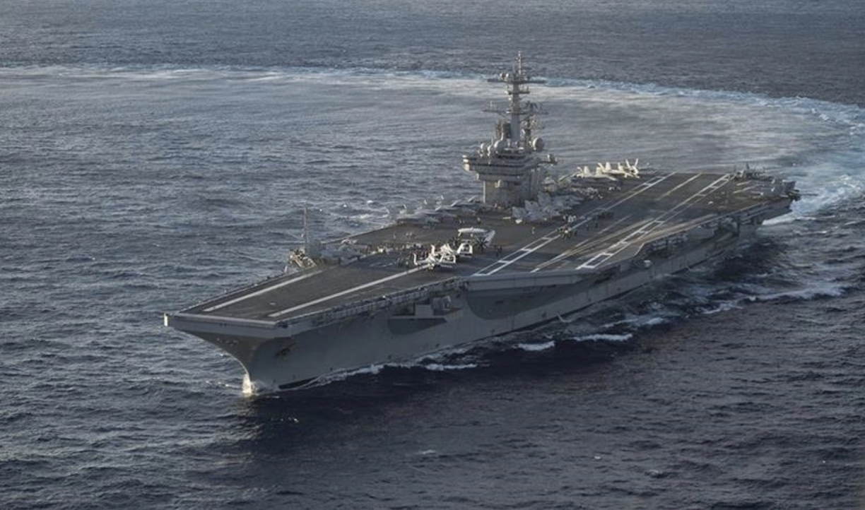 The aircraft carrier was accompanied by USS Robert Smalls guided-missile cruiser, and the USS Milius and USS Shoup Aegis-equipped destroyers.
